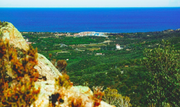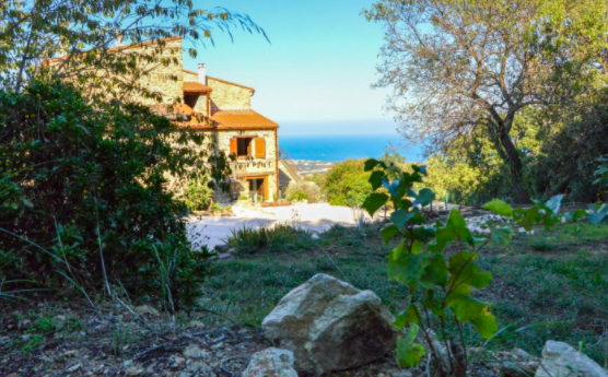 Le Mas d’Amont se situe à 350 mètres d’altitude sur une colline des Albères, à un peu plus de 5 kilomètres d’Argelès-sur-Mer, commune balnéaire très touristique des Pyrénées Orientales, particulièrement l’été. Il fait face à la Grande Bleue, on ne se lasse pas de la vue.