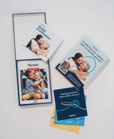 En fin d’année, Neveo a lancé un coffret cadeau à offrir aux grands-parents (celui pour lequel j’ai opté) comprenant 6 mois d’abonnement et une boite de rangement pour les journaux.