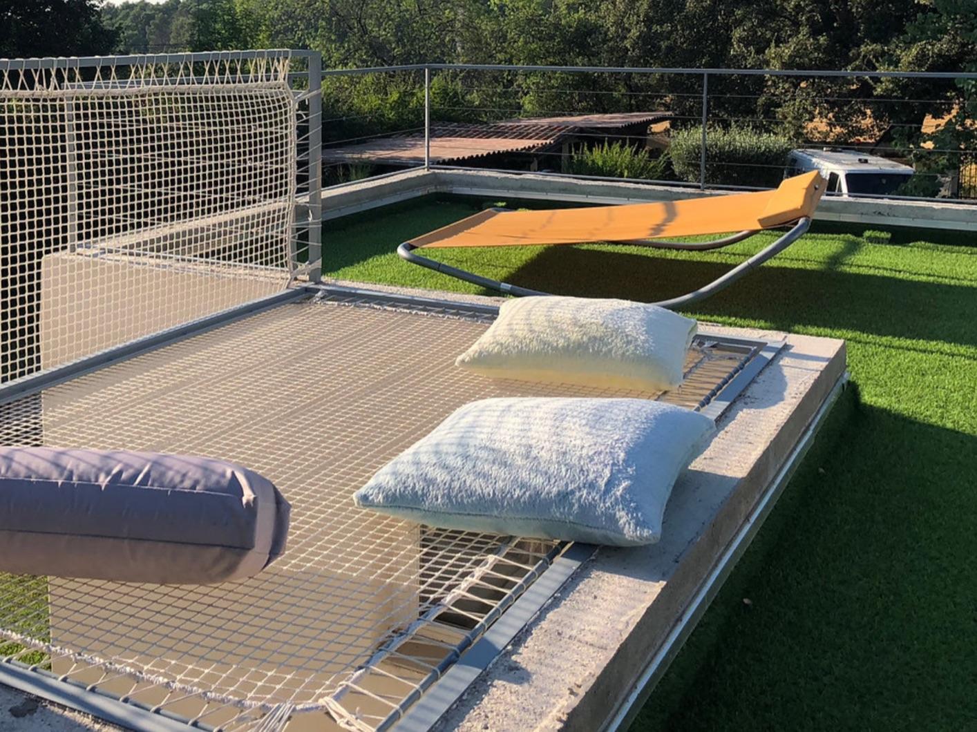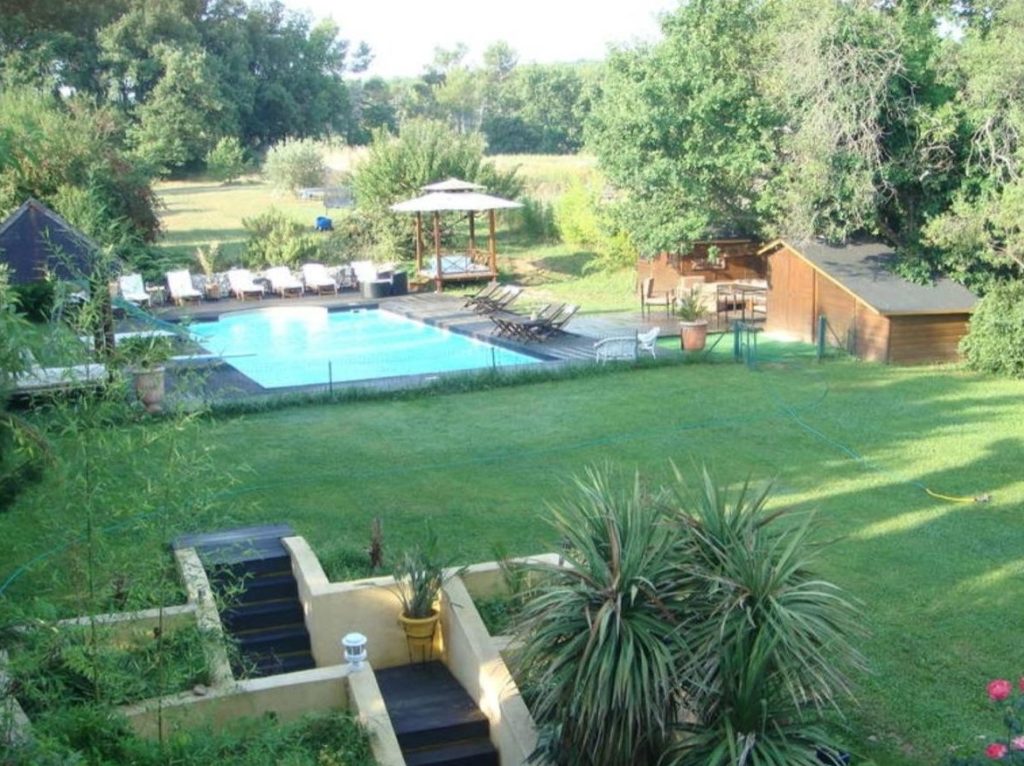 Le jardin est très vert car nous avons un forage qui nous permet d’arroser toutes les nuits pour rafraîchir et lutter contre la sécheresse de nos régions. Il y a un chalet en bois tout en haut du terrain équipé d’un grand lit qui peut faire office de chambre plutôt pour les ados, un terrain de pétanque, une pataugeoire pour les petits, trampoline et jeux de fléchettes.