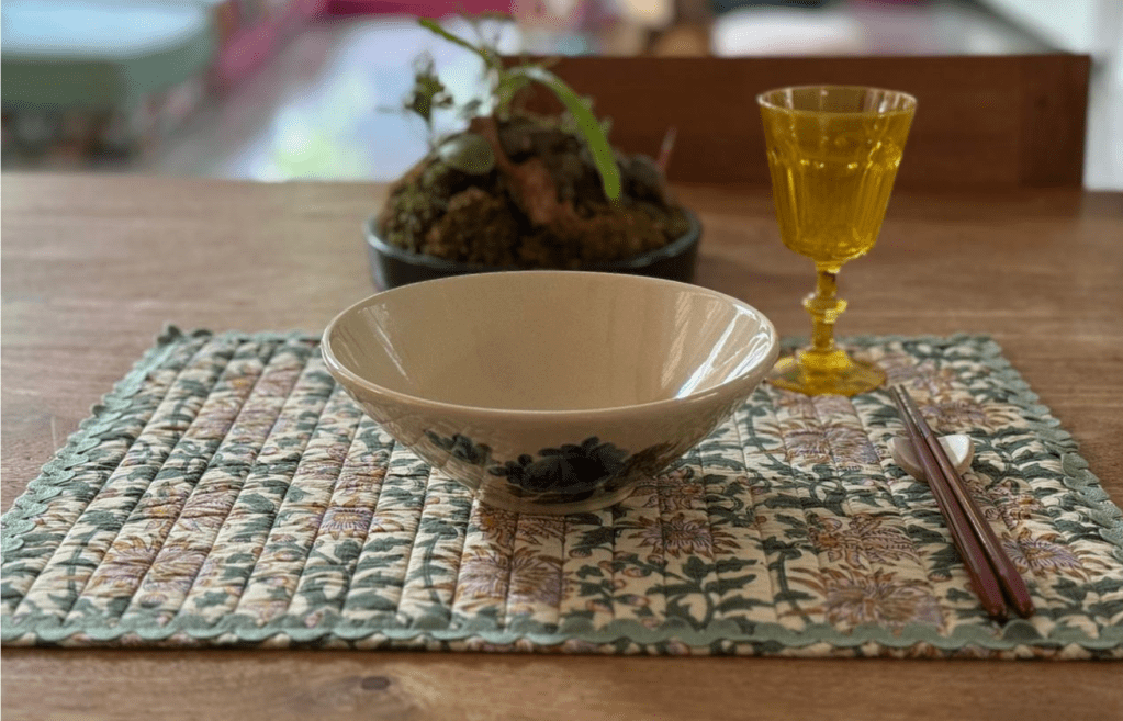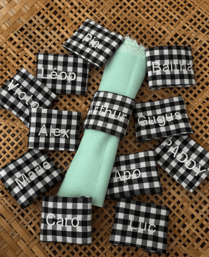 Pour du fait main absolument ravissant et personnalisable j’appelle la talentueuse Mlle Miao ! Isabelle est une amie rencontrée à Saigon qui sait TOUT faire ! Je suis super fan de son travail et fait un grand nombre de mes cadeaux chez elle… Dans les nouveautés j’adore les Sets de table en tissu indien, et les ronds de table personnalisés ( j’en ai 2 jeux ) !